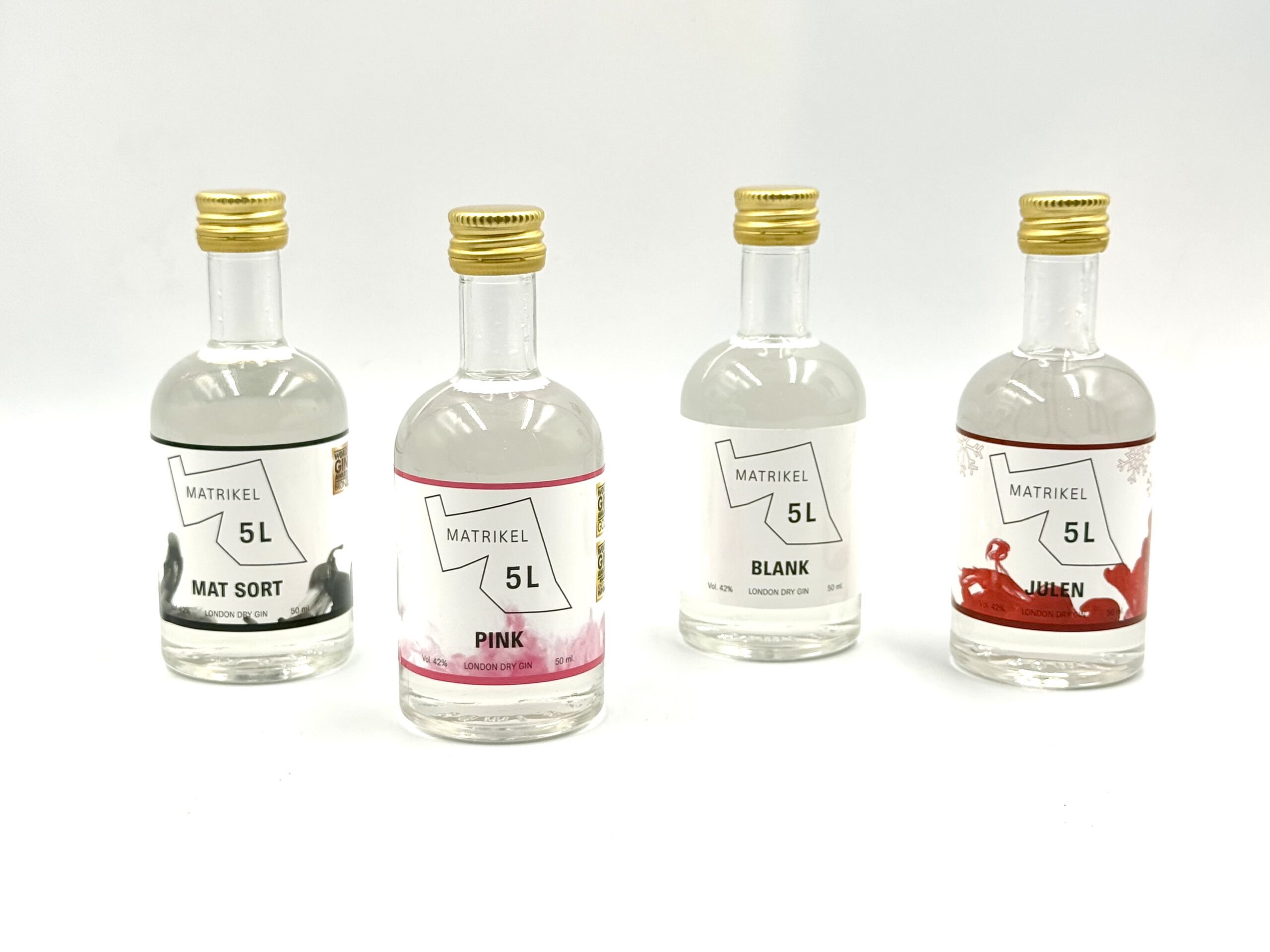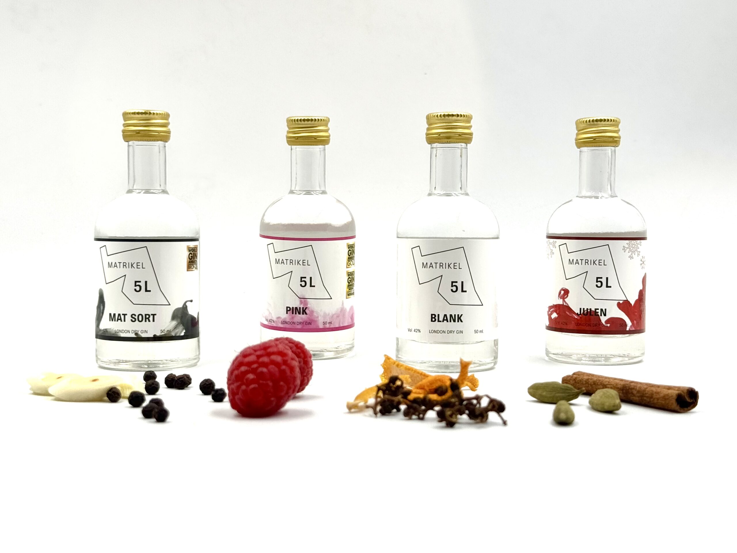 - MAT SORT: En rejse ind i det intense. MAT SORT blander kraften fra sort indisk peber med den friske syre fra citrongræs. Denne gin er for dem, der tør udforske de dybere, mere komplekse smagsprofiler og passer perfekt til nysgerrige ginelskere.