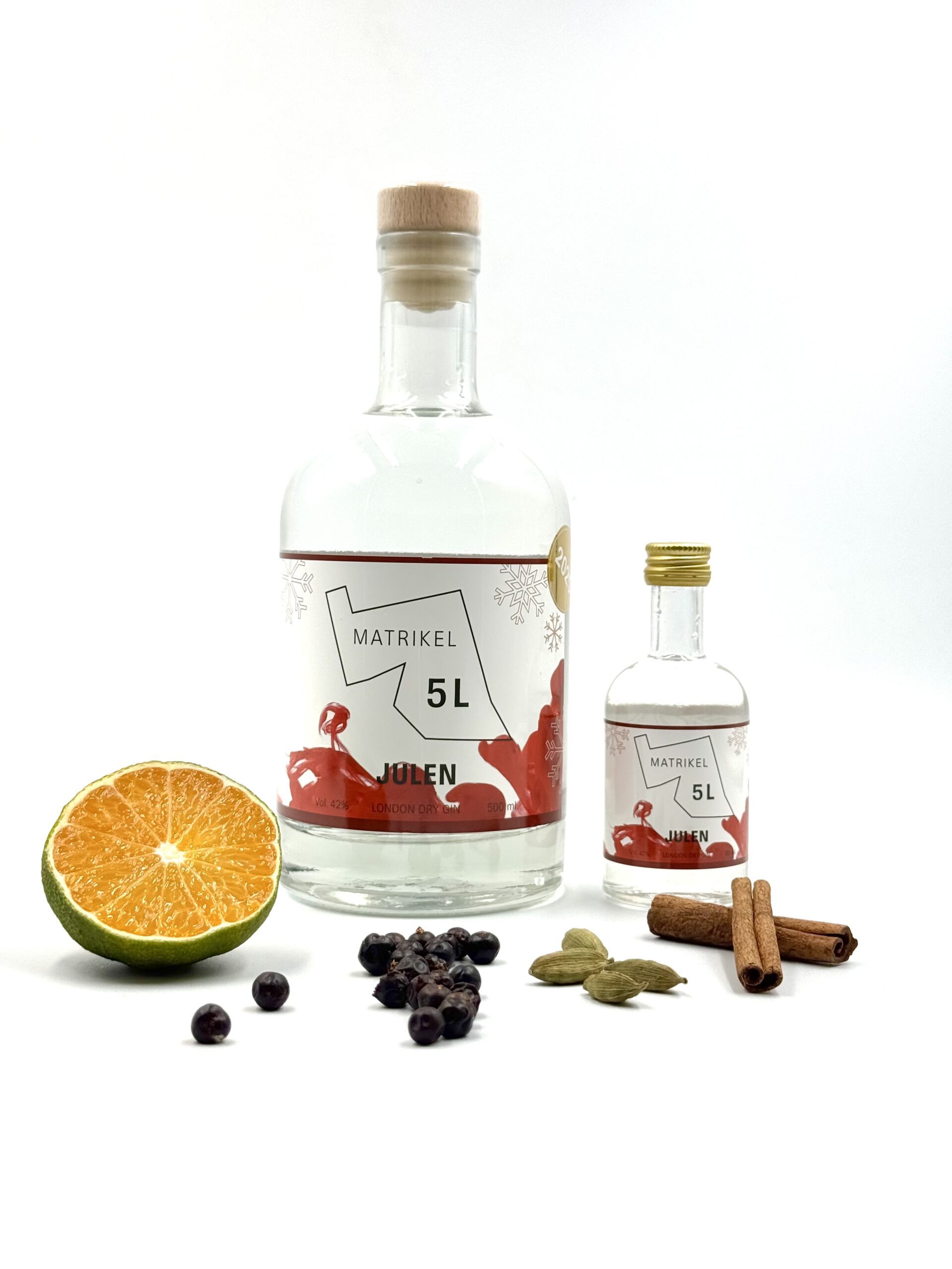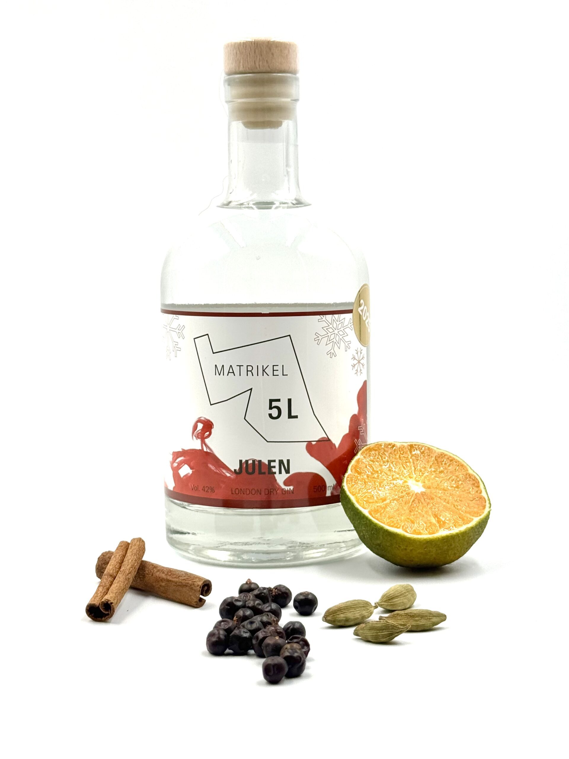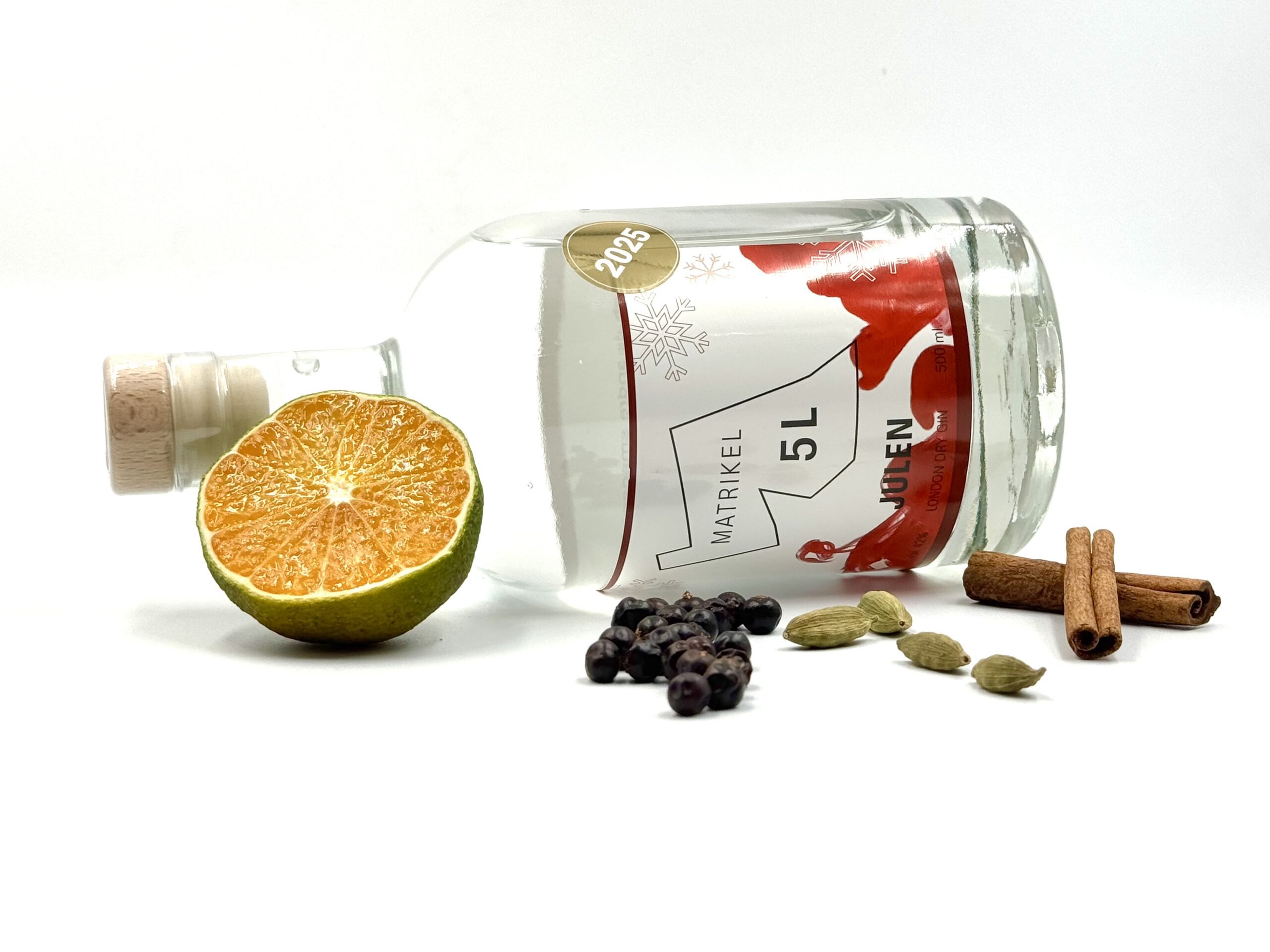 Velkommen til en jul, der kan smages! MATRIKEL 5L’s JULEN 2025 Gin er essensen af julens hygge og glæde, destilleret til perfektion. Med en kraftfuld alkoholprocent på 42% er denne gin skabt til at bringe julens magi direkte til dit glas og varme vinteraftenerne op.